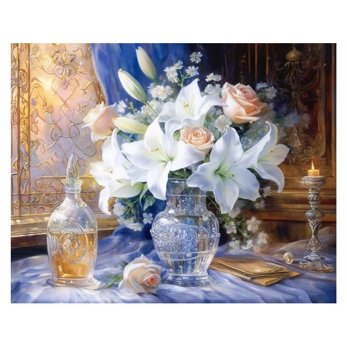 Алмаз мозаика (клас.) 40х50 см, с подр.,с полн.заполн.(30цв) Лилии в хрустальной вазе (Арт. НД-0642)