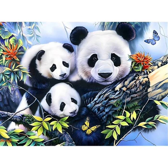 Алмаз мозаика (класс.) 30х40 см, с подр., с полн. заполн. (30цв) Семья панд (Арт. НД-0530)