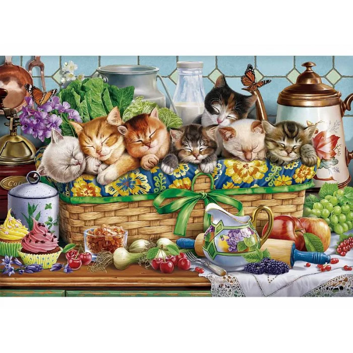 Алмаз. мозаика (класс) 40х50 см, с подр., с полн. заполн. (30цв.) Котята в корзинке (Арт. НД-8609)