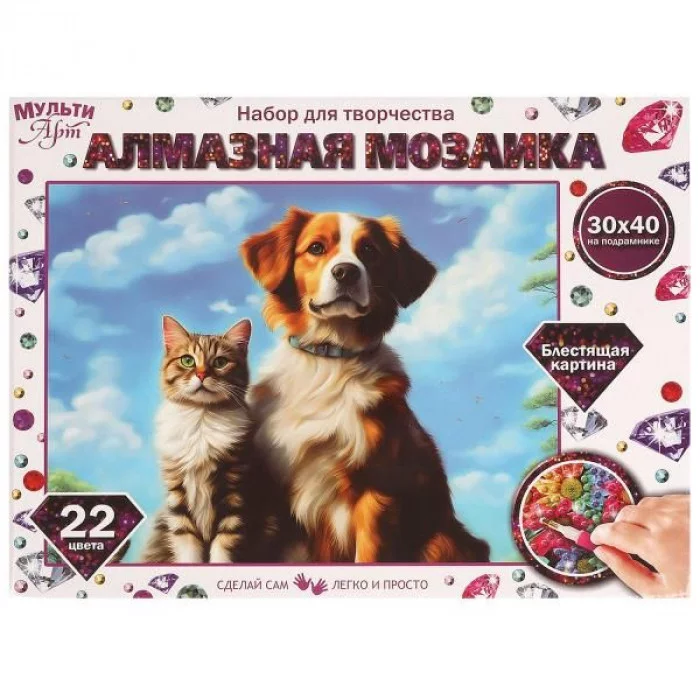 Алмазная мозаика 30*40 см с подрамником котик и собака МУЛЬТИ АРТ AM30X40-115328