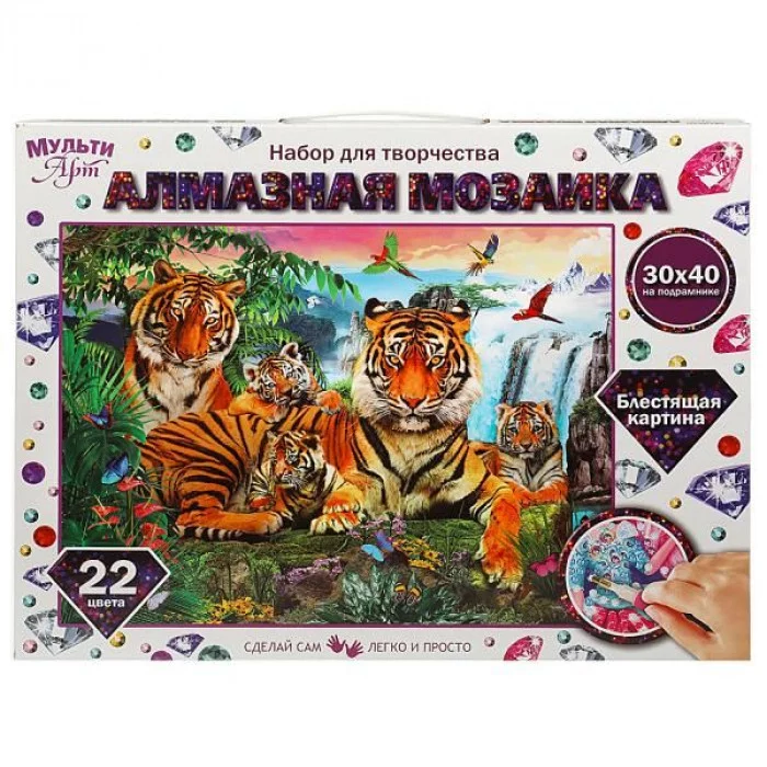 Набор для детского творчества – алмазная мозаика «Тигры» ТМ «Мульти Арт» - отличный подарок для ребёнка, который будет способствовать развитию его творческих способностей.