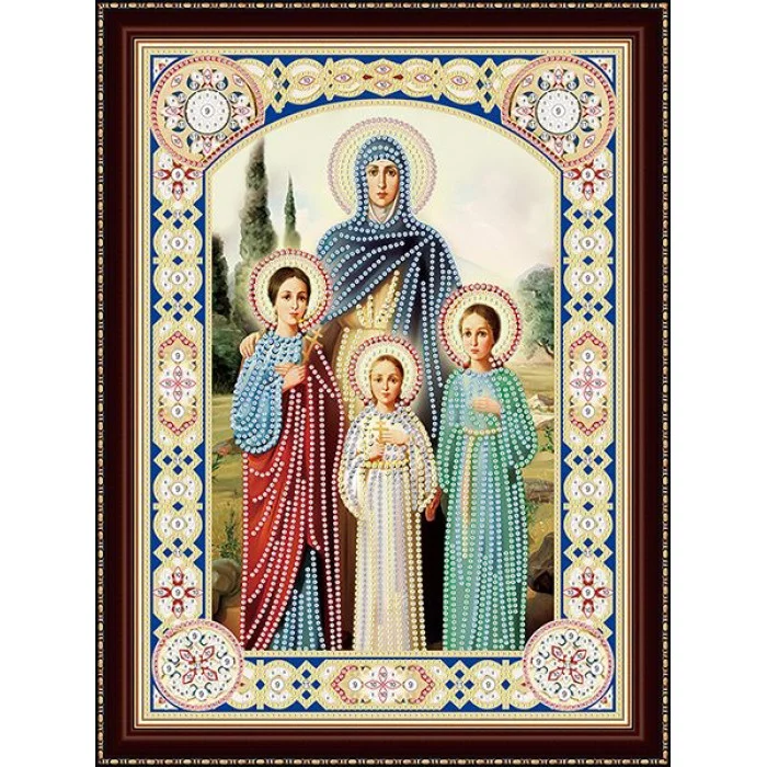 Алмазная мозаика 30х40см с подр.c част.зап.(блест) Вера, Надежда, Любовь и мать их София (Арт. BH031)
