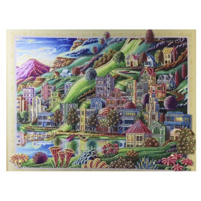 Алмазная мозаика 40х50 см с подрамником "Дома на склоне". Арт. HZ035