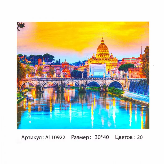 Алмазная мозаика Alingar, на подрамнике, с полным заполнением, (матов.) дизайн рамка, 30х40 см, 20 цветов, "Город на реке" AL10922