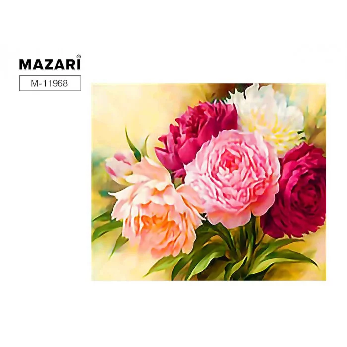 Алмазная мозаика с мольбертом ПИОНЫ, 21х25см, 1 дизайн, частичная выкладка, ОПП упаковка. M-11968