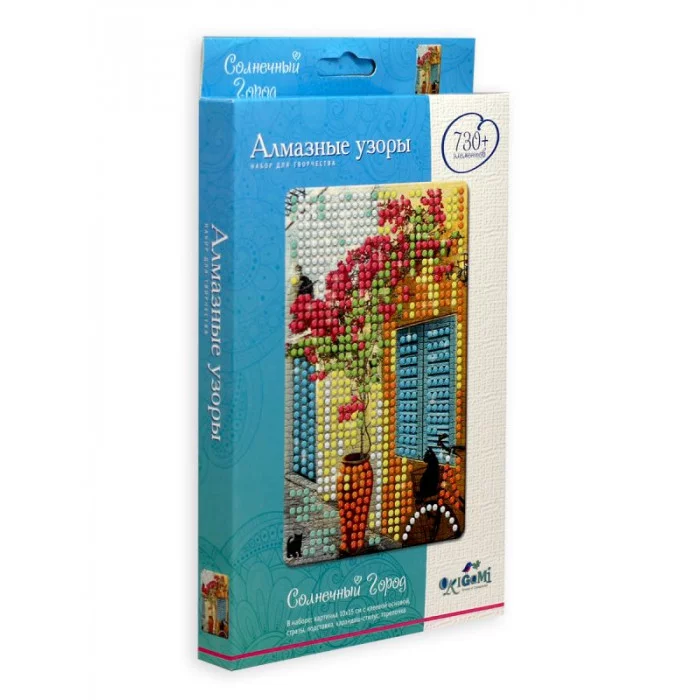 Приглашаем Вас совершить блестящее путешествие в мир алмазной мозаики. Сделать картинку "Солнечный город" очень просто. Необходимо снять защитный слой с клеевой основы, и с помощью карандаша – стилуса приклеить стразы по номеру и цвету. Готовую картинку можно поставить на мольберт, который входит в набор. Блестящий результат восхищает всех! В наборе: картинка с клеевой основой, набор цветных стразов, стилус-карандаш, тарелочка, мольберт.