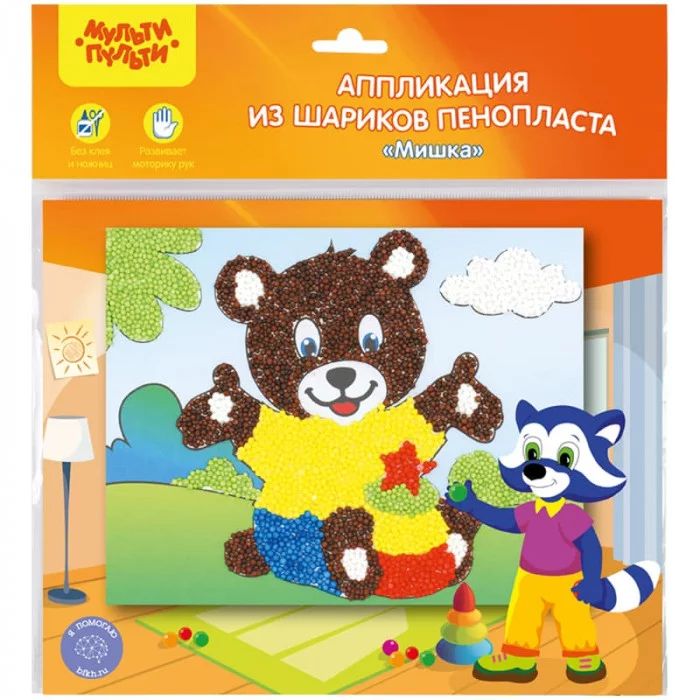 Аппликация из цветных шариков пенопласта Мульти-Пульти "Мишка" 289045
