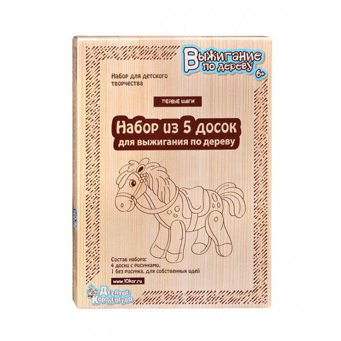 Размер упаковки: 23*17*2,5 см Вес: 462 г Функционал: поделка, набор для творчества и хобби Упаковка: картонная коробка Страна обладатель бренда: Россия Материал: древесина Комплектация: доска - 5 шт. Возраст ребенка: от 7 лет Увлекательный набор для творчества и досуга станет прекрасным подарком маленьким непоседам. В набор входят доски с нанесенными рисунками. По контуру необходимо выжигать специальным прибором. Затем можно раскрасить и покрыть лаком. Готовую поделку можно подарить близким или украсить ею интерьер. Такие наборы развивают творческое мышление. внимание, усидчивость, стимулируют развитие мелкой моторики и цветового восприятия. Яркая расцветка привлекает внимание. Все элементы наборы изготовлены из безопасных и гипоаллергенных материалов. Высококачественные материалы обеспечат изделию долгий срок службы без потери внешнего вида и эксплуатационных свойств.