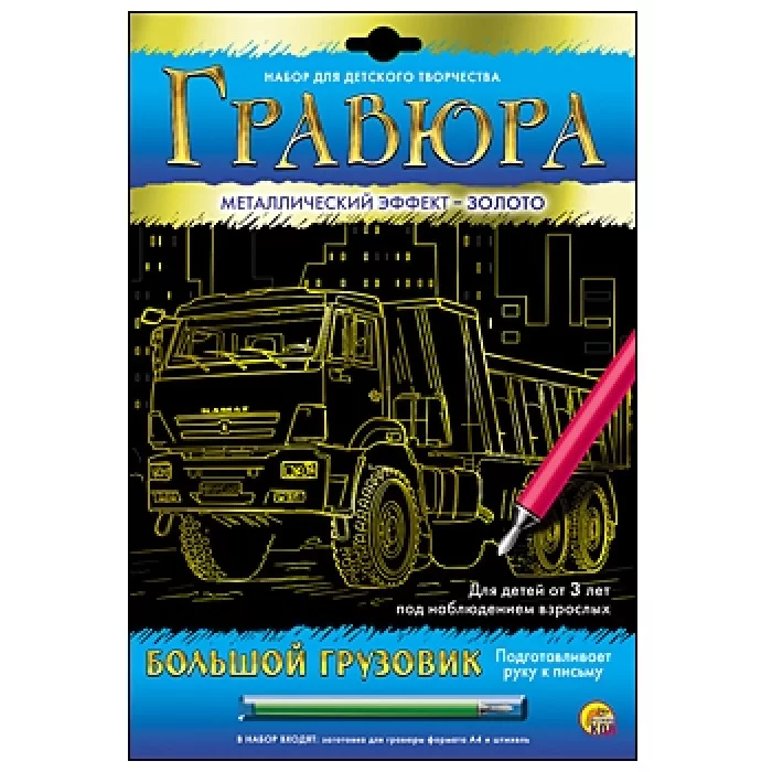 Гравюра А4 в конверте. Золото. БОЛЬШОЙ ГРУЗОВИК (Арт. Г-6116)