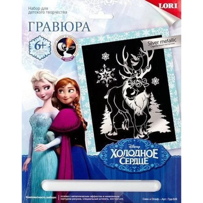 Комплект: основа с металлическим эффектом и нанесенным контуром рисунка, специальный штихель, инструкция. Из чего сделана игрушка (состав): картон, пластик Упаковка: картонная упаковка Размер гравюры: 27,5x1x21,5 см Размер упаковки- 27,5x1x21,5 см Возраст: от 6 лет Страна обладатель бренда: Россия Гравюра - особый вид графического искусства. Сцарапывая верхний слой гравюры специальным штихелем, входящим в набор, ребёнок может самостоятельно создать настоящее произведение искусства и почувствовать себя гравером. Готовую гравюру можно вставить в упаковку-рамку. Набор по созданию оригинальной гравюры с изображением очаровательного и забавного снеговика и оленя - героев мультфильма "Холодное сердце" - "Свен и Олаф" Грд-026 от российского производителя "Lori" точно понравится маленьким рукодельницам, ведь они смогут создать самостоятельно замечательный подарок маме, бабушке или подруге. Гравюра требует усидчивости, внимания и терпения, ведь это кропотливый труд. Набор содержит все необходимое для со