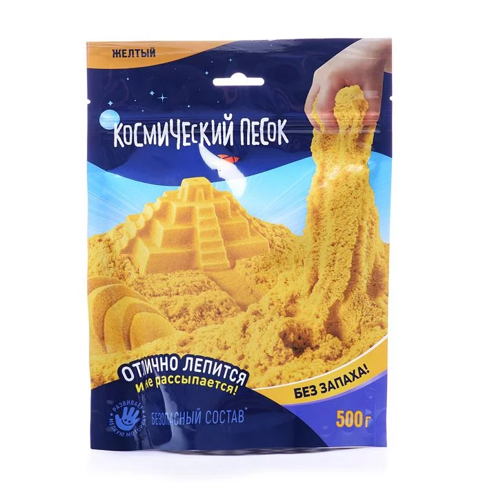 Игрушка для детей "Космический песок" 500 гр, дой-пак, желтый К006
