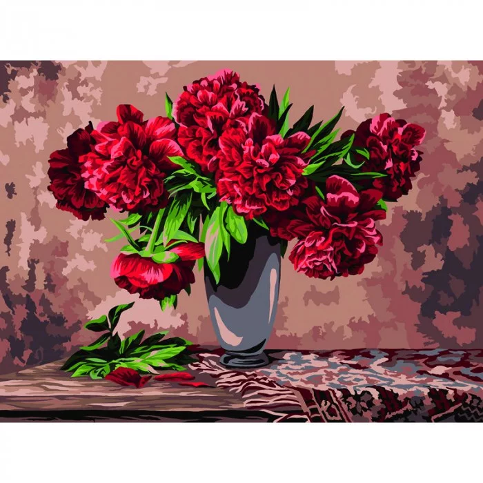 Картина по номерам на картоне ТРИ СОВЫ "Красные пионы", 30*40, с акриловыми красками и кистями 335019