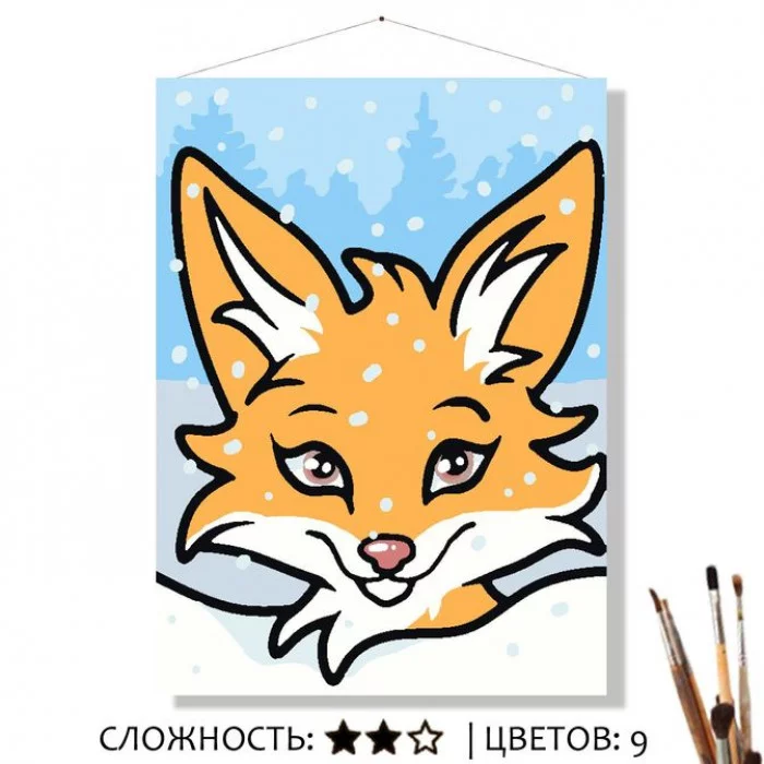 Картина по номерам на холсте 20х16 "Лисенок в снегу" Знайленд КН2015012