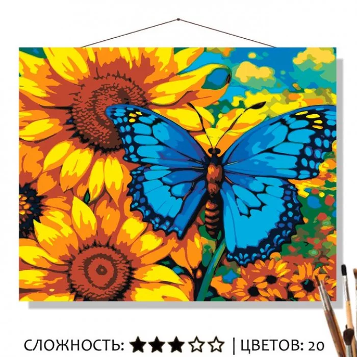 Картина по номерам на холсте 50х40 "Бабочка на подсолнухе" Знайленд КН50401240