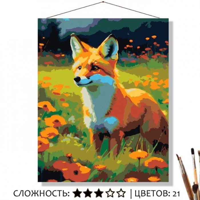 Картина по номерам на холсте 50х40 "Лисёнок и маки" Знайленд КН5040572