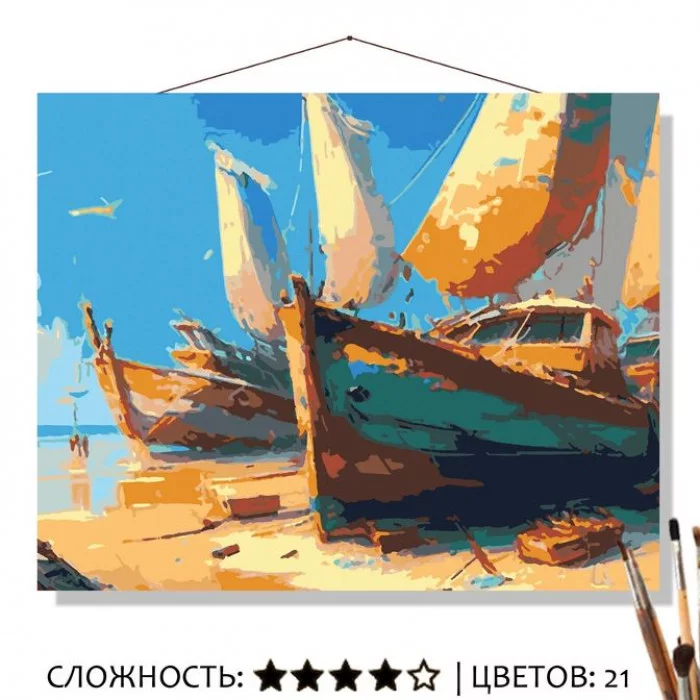 Картина по номерам на холсте 50х40 "Лодки Лодки на пляже" Знайленд КН5040329