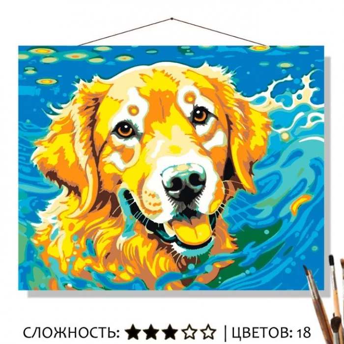 Картина по номерам на холсте 50х40 "Пес в бассейне" Знайленд КН50401241