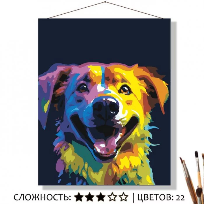 Картина по номерам на холсте 50х40 "Радужный Барбос" Знайленд КН5040653
