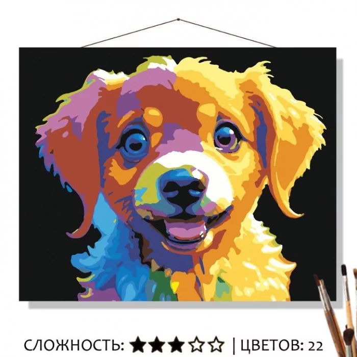 Картина по номерам на холсте 50х40 "Радужный щенок" Знайленд КН5040656