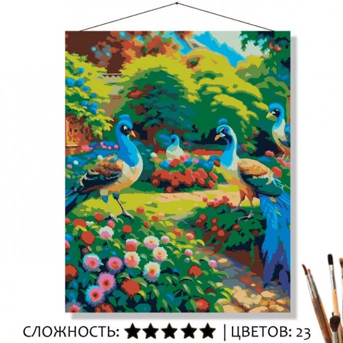 Картина по номерам на холсте 50х40 "Сад с павлинами" Знайленд КН5040592