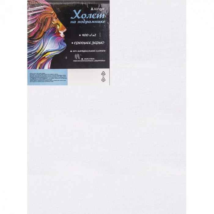 Холст на подрамнике, Alingar, 30х40 см, 400г/м2, среднее зерно, хлопок, акриловая трёхкомпонентная грунтовка, прямоугольный, индивидуальная упаковка AL9470