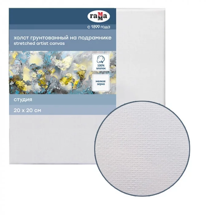 Холст на подрамнике Гамма "Студия", 20*20 см, 100% хлопок, 280г/м2, мелкое зерно 304705