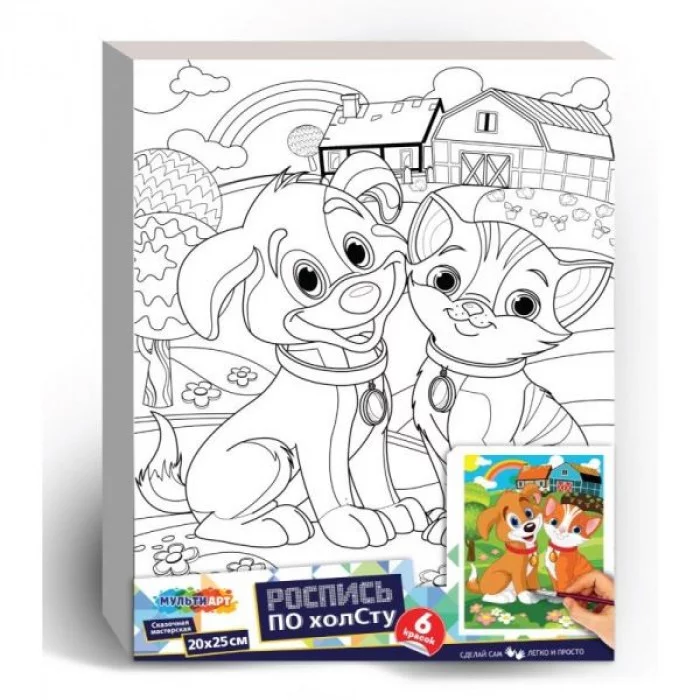 Набор для творчества - роспись по холсту «Кошка и собачка» из серии «Сказочная мастерская» ТМ «Мульти Арт» станет отличным подарком для юных художников: