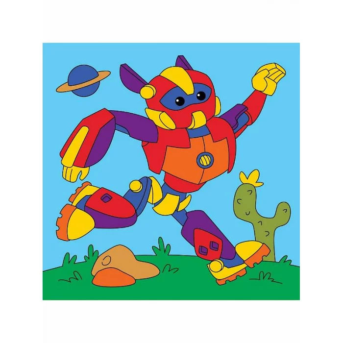 Холст с красками 15х15 см. Бегущий робот (Арт. Х-7424)