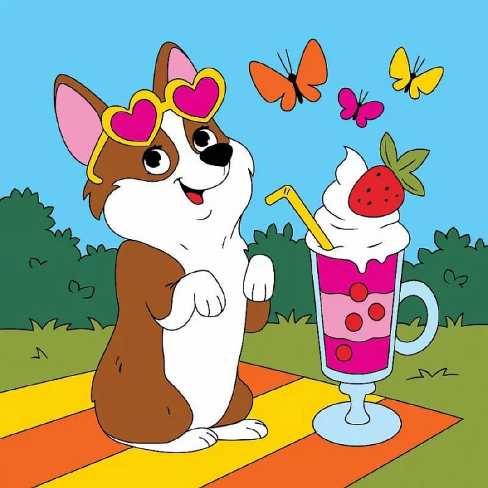 Холст с красками 15х15 см. Корги на отдыхе (Арт. Х-4965)