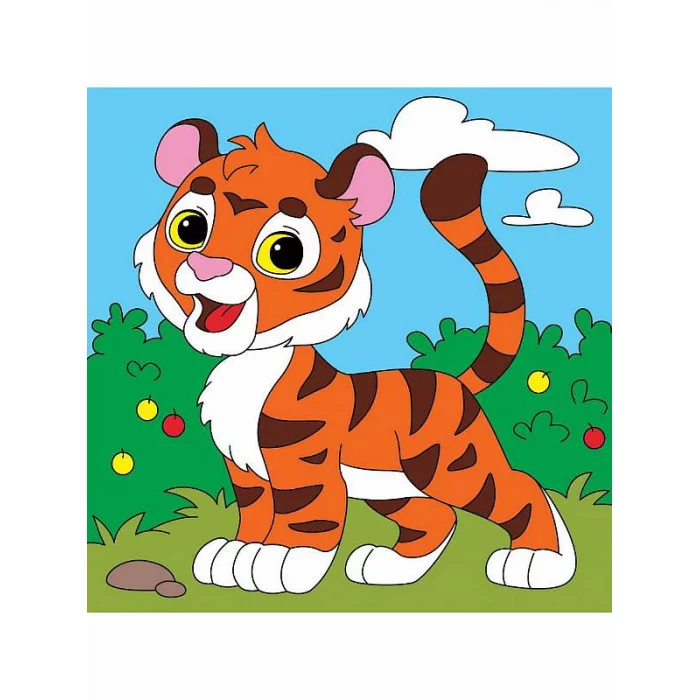 Холст с красками 15х15 см. Отважный тигрёнок (Арт. Х-7428)