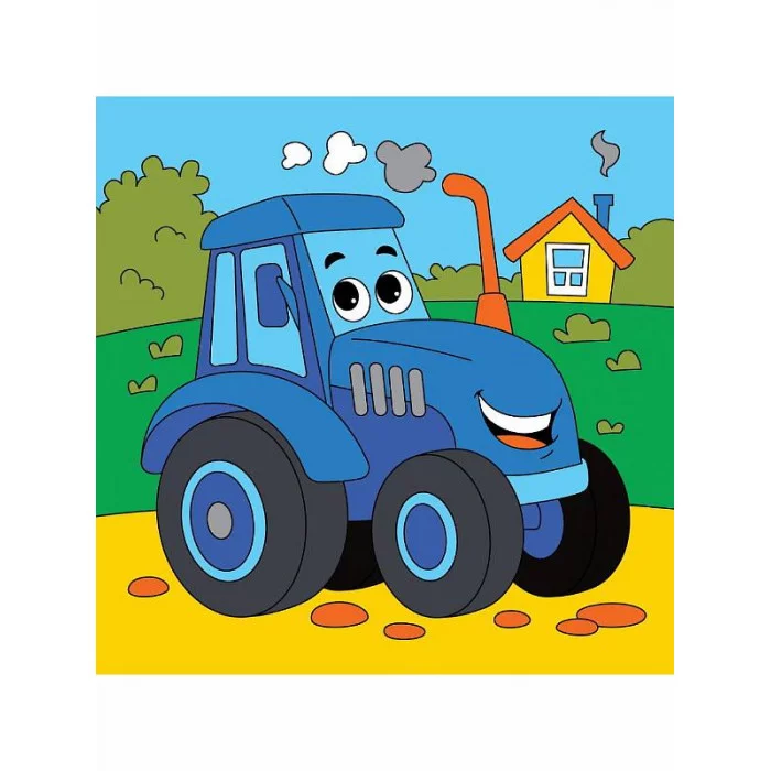 Холст с красками 15х15 см по номерам. ВЕСЁЛЫЙ ТРАКТОР (Арт. Х-7435)