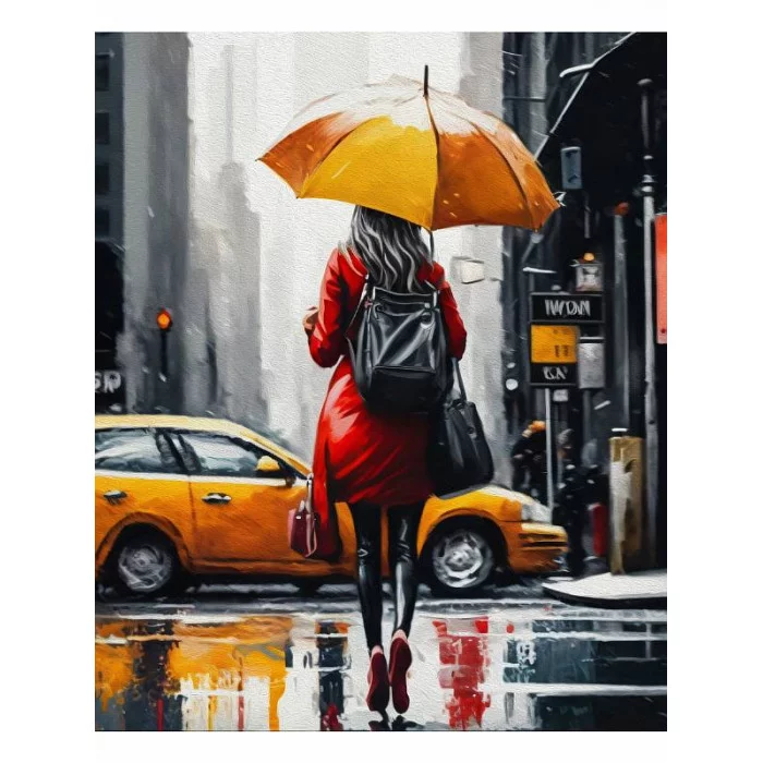 Холст с красками 17х22 по номер. в кор. (13цв.) Дождь в Нью-Йорке (Арт. Х-3951)