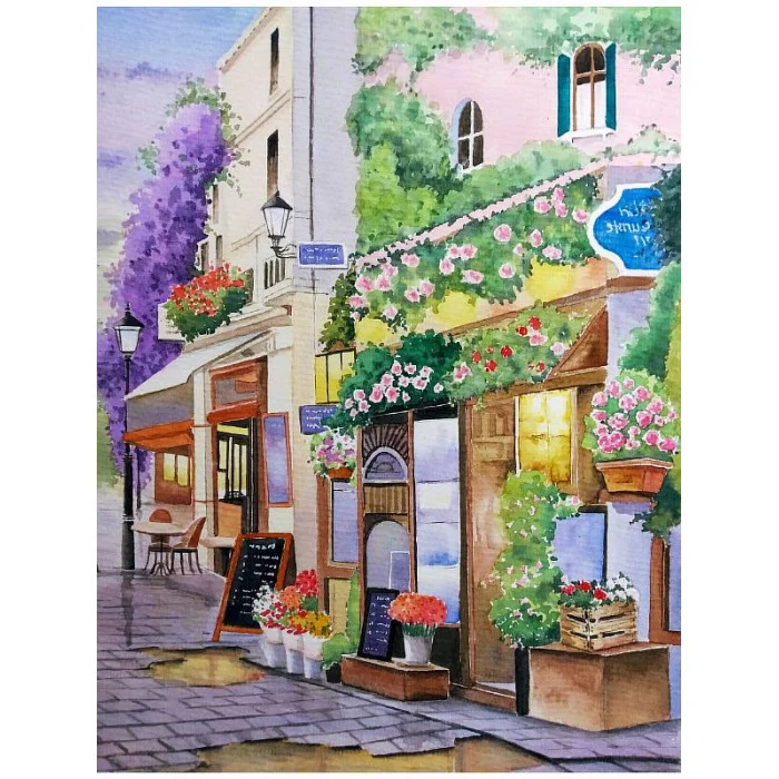 Холст с красками 17х22 по номер. в кор. (14цв.) Кафе в цветах (Арт. Х-3849)