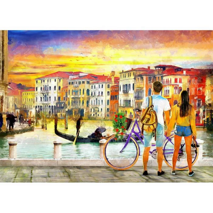Холст с красками 17х22 по номер. в кор. (14цв.) Пара на закате в Венеции (Арт. Х-3841)