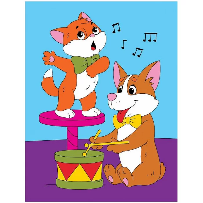 Холст с красками 18х24 см по номерам. Корги и котёнок (Арт. Х-4971)