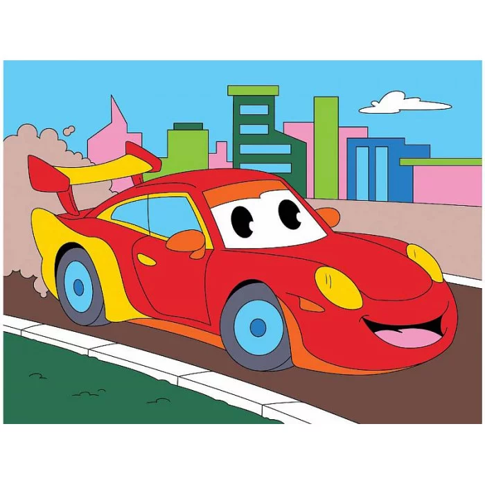 Холст с красками 18х24 см по номерам. Красная машина (Арт. Х-4972)