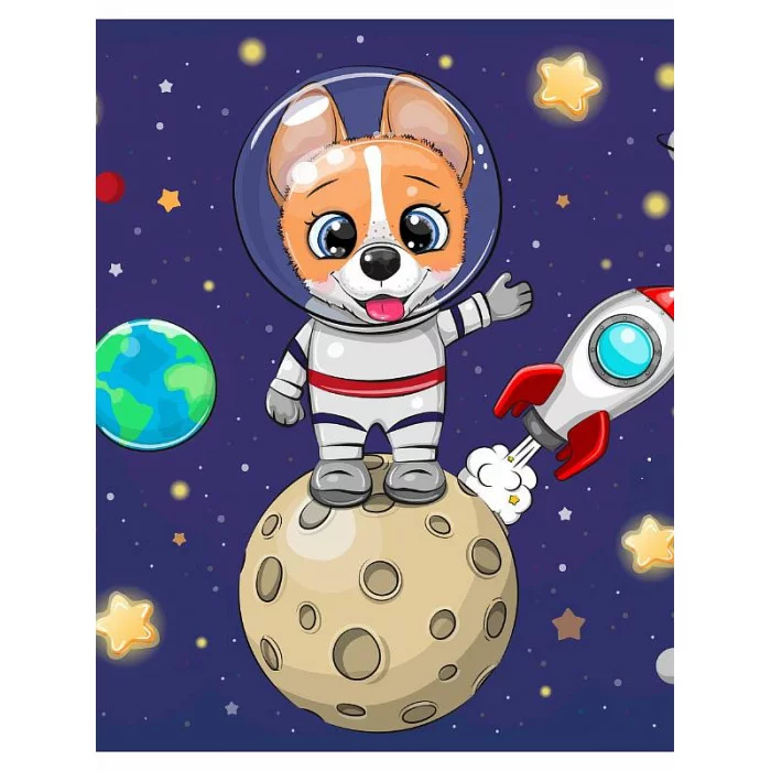 Холст с красками 22х30 по номер. в кор. (16цв.) Маленький космонавт (Арт. Х-4011)