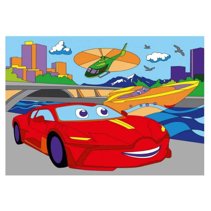 Холст с красками 25х30 см. Городские гонки ( Арт. ХК-7211)