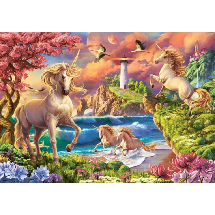 Холст с красками 40х50 см по номерам. Единороги на морском побережье ( Арт. ХК-7980)