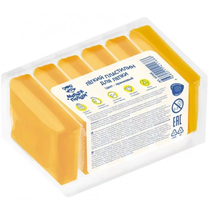 Легкий пластилин для лепки Мульти-Пульти, оранжевый, 6шт., 60г, прозрачный пакет 332899