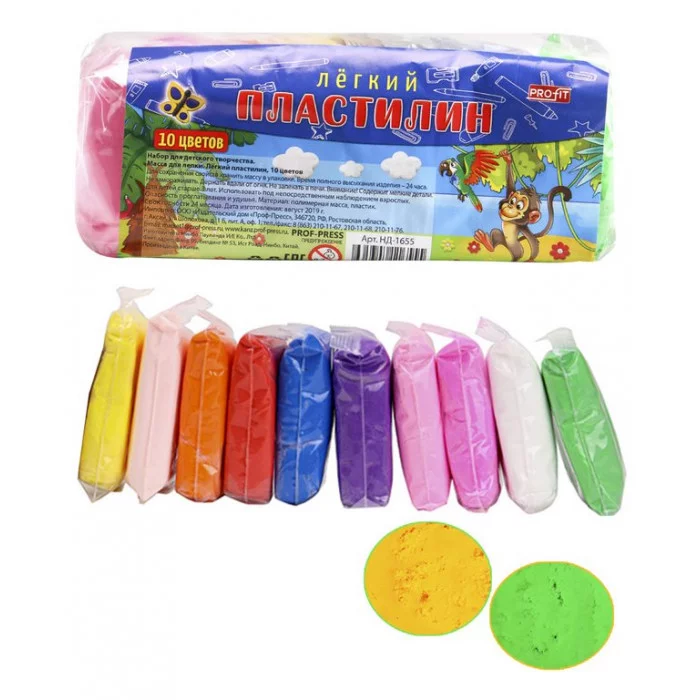 Масса для лепки. Лёгкий пластилин 10 цв. ТМ"Profit" НД-1655