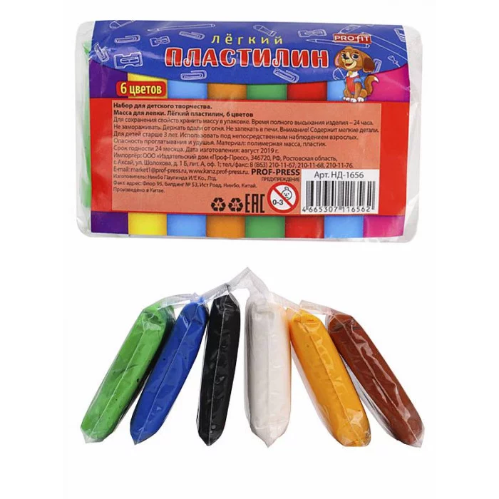 Масса для лепки. Лёгкий пластилин, 6 цв. "Profit" НД-1656