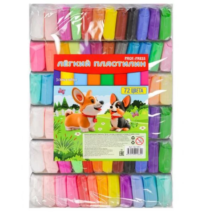 Масса для лепки. Лёгкий пластилин 72 цв 3 стека. НД-1803