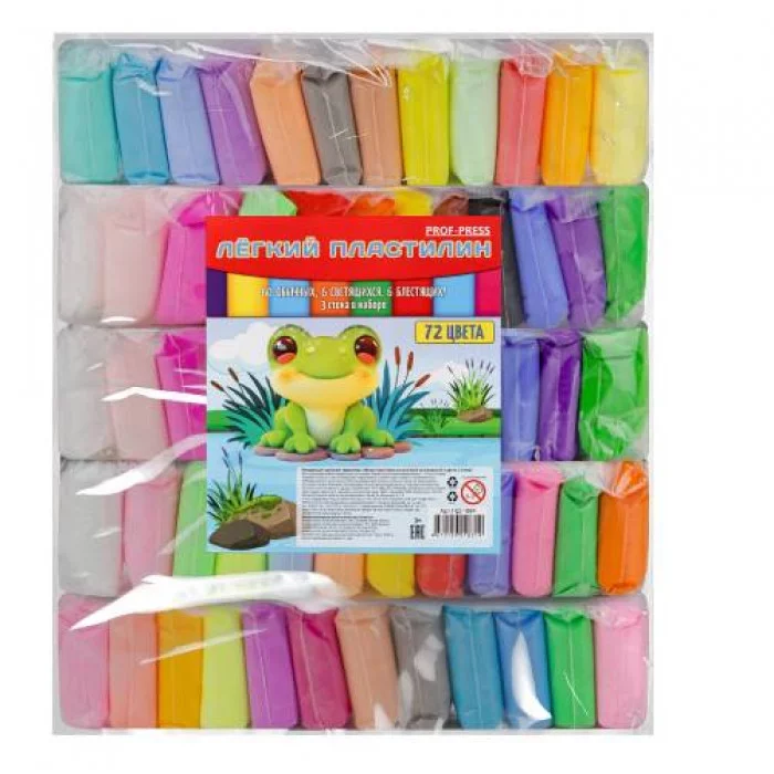 Лёгкий пластилин придётся по душе и детям, и взрослым! Он отличается от обычного пластилина не только весом, но и текстурой: масса легко лепится, а после высыхания на воздухе застывает, сохраняя форму. Разные цвета можно смешивать и в результате получать совершенно новые расцветки. При этом пластилин не пачкает мебель, не крошится, не деформируется и не тонет в воде. С готовыми фигурками можно спокойно играть, не боясь повредить поделки. Количество: 72 цвета, 3 стека, (6 цв. свет. + 6 цв. блест. в компл.). Материал: полимерная масса, пластик. Упаковка: пакет, вкладыш.