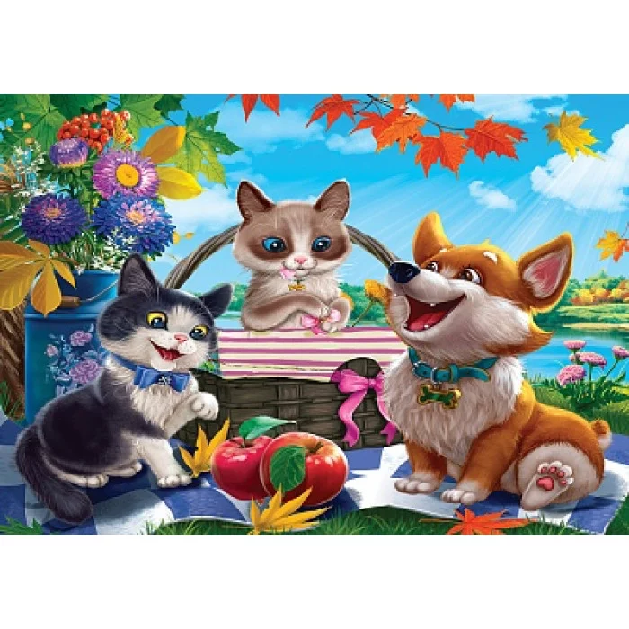 МОЗАИКА ИЗ ПАЙЕТОК. Формат А4. Котята и щенок на пикнике(Арт. М-1819) М-1819