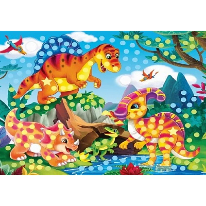 Мозаика из пайеток "Веселые динозавры у реки" придется по душе любому ребенку! Такое увлекательное занятие позволит юным мастерам развить гибкость пальцев и художественный вкус, а также интересно провести время. Формат: А4.