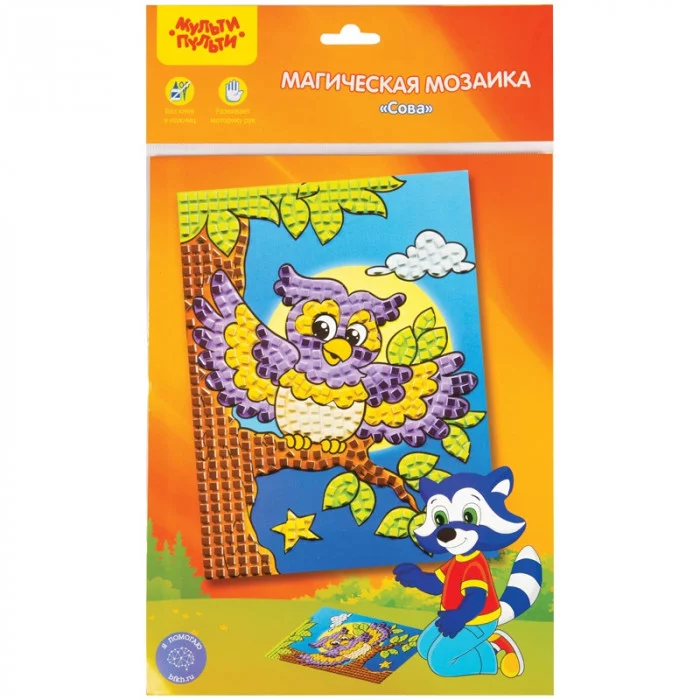 Мозаика магическая на самоклеящейся основе Мульти-Пульти "Сова" из мягкого пластика 257873