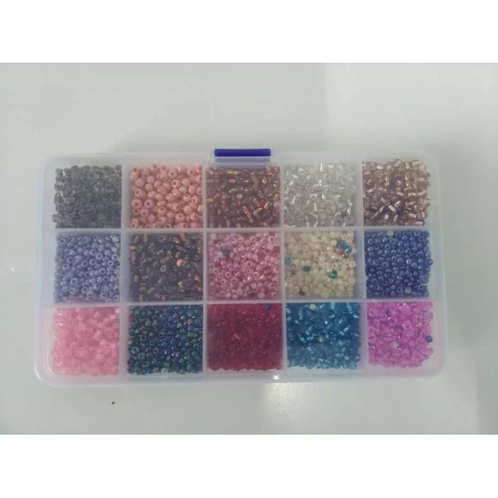 Набор бисера из 15 цветов в пластиковом боксе – отличный подарок для каждого, кто увлекается бисероплетением или бисерной вышивкой. Используя этот набор, можно вышить картину, сплести комплект яркой бижутерии, создать оригинальную мозаику или фигурки для украшения интерьера. Набор укомплектован наиболее популярными цветами и редкими оттенками бисера 12 размера. Каждый цвет занимает отдельную ячейку, что позволяет нанизывать на леску, проволоку или нитку сразу по несколько бисерин одного цвета. Дополнительно в каждом наборе рукодельниц ждет подарок, который также поможет в работе. Сам бокс удобно хранить в ящике стола, на полке или на столе. Благодаря плотной крышке, бисер не рассыплется и цвета не перемешаются между собой.