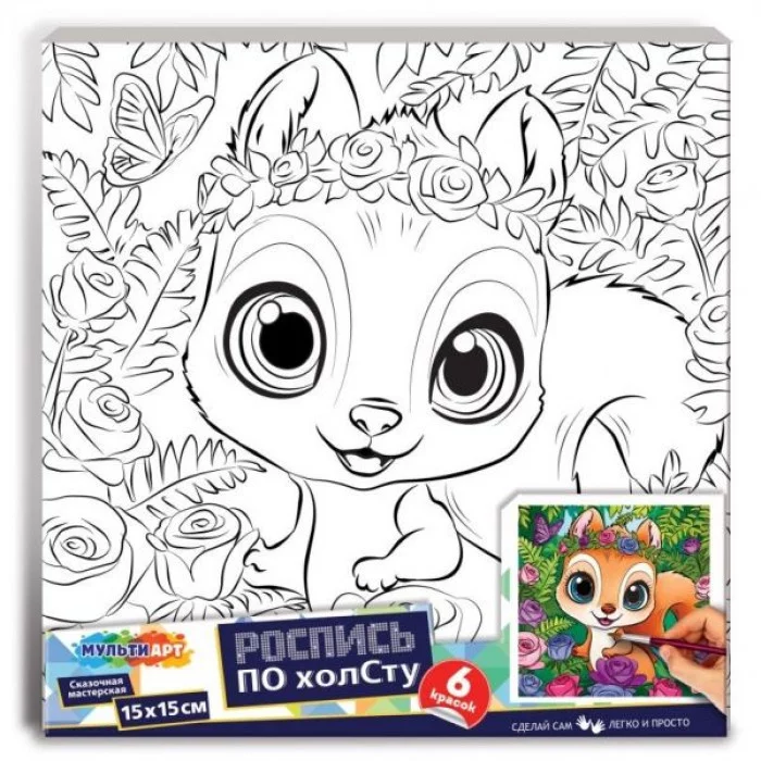 Набор д/дет тв-ва холст для росписи 15*15 см белочка МУЛЬТИ АРТ CANV15X15-118503