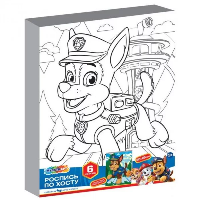 Ребёнок увлекательно и полезно проведёт время, расписывая холст с изображением весёлого щенка в форме полицейского. Благодаря подсказке на упаковке ребёнок сможет правильно подобрать цвета. Готовую картину можно повесить в комнате или использовать в качестве подарка, сделанного своими руками.